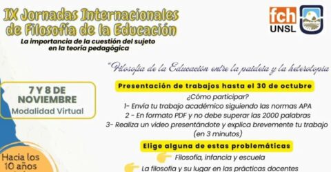 Invitamos a docentes, estudiantes e investigadores a participar en lasIX JORNADAS INTERNACIONALES DE FILOSOFÍA DE LA EDUCACIÓN:La importancia de la