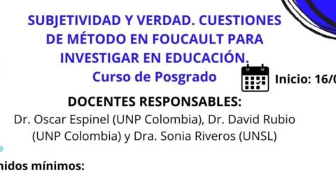 Curso de posgrado: SUBJETIVIDAD Y VERDAD. CUESTIONES DE MÉTODO EN FOUCAULT PARA INVESTIGAR EN EDUCACIÓN El curso se propone brindar
