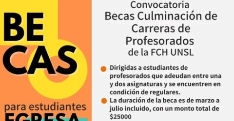 Convocatoria abierta a Becas de Culminación de Carreras de Profesorados Destinatarios: estudiantes de profesorados de la FCH que adeudan entre