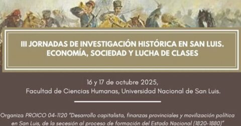 III Jornadas de Investigación Histórica en San Luis. Economía, sociedad y lucha de Clases 16 y 17 de octubre -